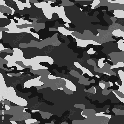 Grey Camouflage seamless pattern texture. Abstract modern vector military camo backgound. Fabric textile print template. Vector illustration.