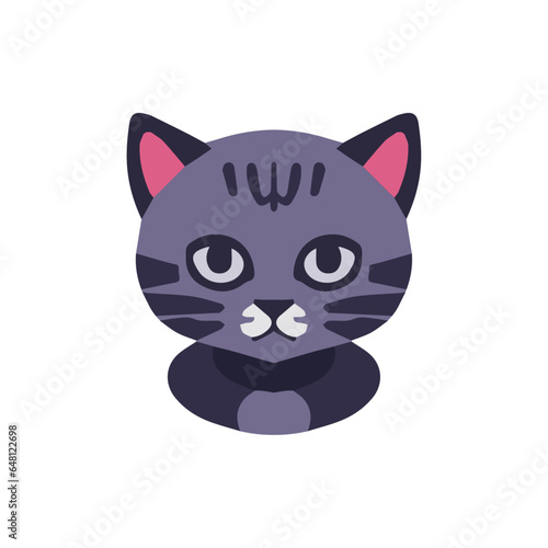 Grey cat vector illustration, flat black cat mascot vector art isolated on a white background