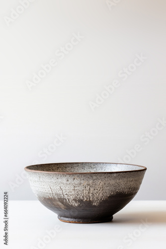 Grey Ceramic Bowl on a Grey Background with Space for Copy