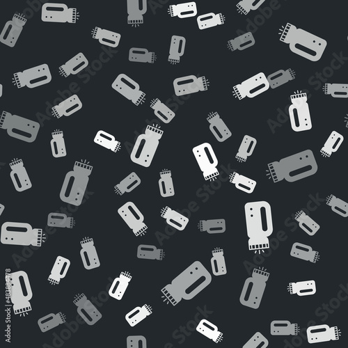 Grey Flashlight for diver icon isolated seamless pattern on black background. Diving underwater equipment. Vector