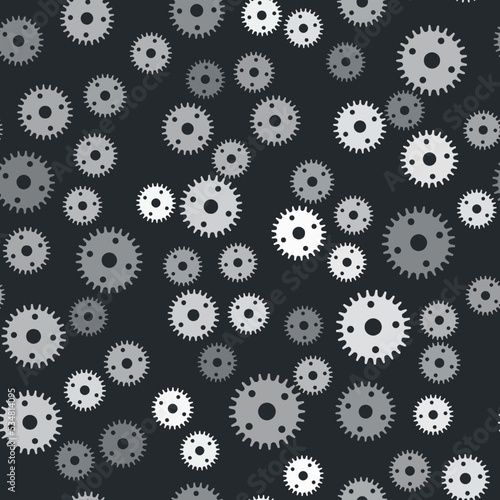 Grey Gear icon isolated seamless pattern on black background. Cogwheel gear settings sign. Cog symbol. Vector