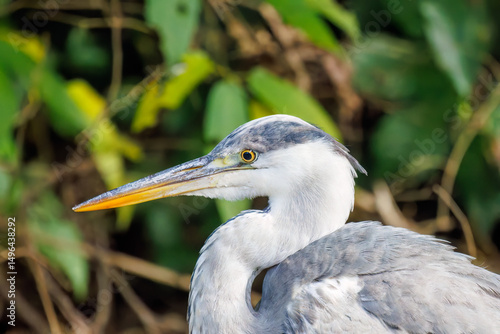 美しいアオサギ(サギ科) 英名学名:Grey Heron (Ardea cinerea jouyi, family comprising egrets) 東京都文京区にある庭園 江戸時代(17世紀)からある歴史ある公園で、かつては軍の施設、そして東京大学の学者も置かれた 現在は地域の人々の憩いの場所となっている 東京都文京区小石川植物園-2024