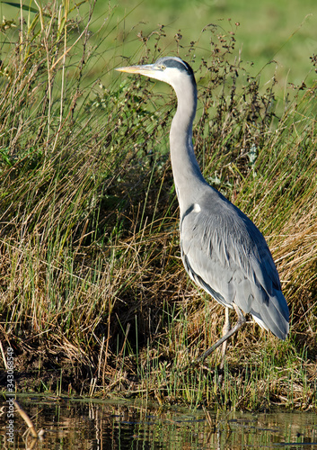 Grey Heron stood on the bank