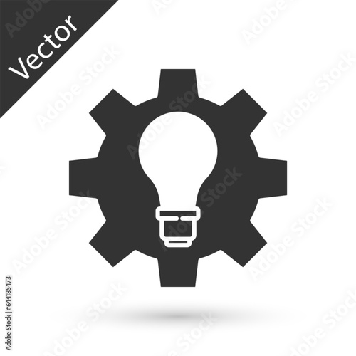 Grey Light bulb and gear icon isolated on white background. Innovation concept. Business idea. Vector