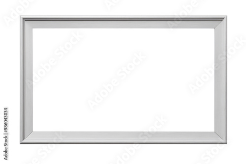 Grey picture frame with an empty blank canvas for use as a border or home décor, png file cut out and isolated on a transparent background, stock illustration image