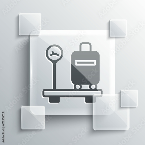 Grey Scale with suitcase icon isolated on grey background. Logistic and delivery. Weight of delivery package on a scale. Square glass panels. Vector