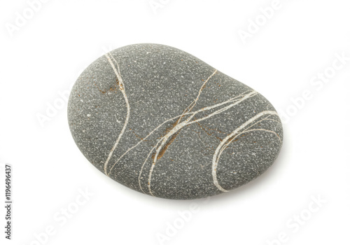 Grey sea pebble with textured surface isolated on white background ideal for zen spa and cosmetic concepts