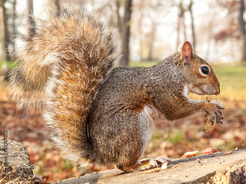 grey squirrel eating nut