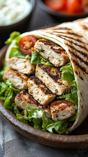 Grilled chicken and greens in a tortilla