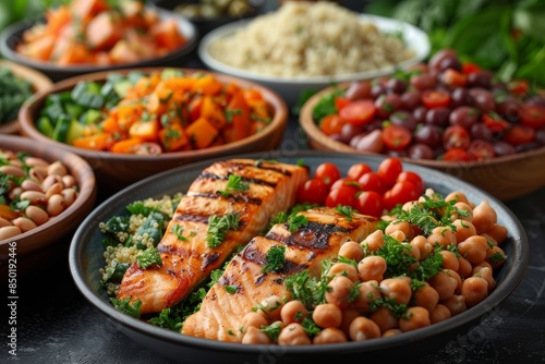 Grilled Chicken Breast With Quinoa, Chickpeas, and Salad delicious and healthy meal