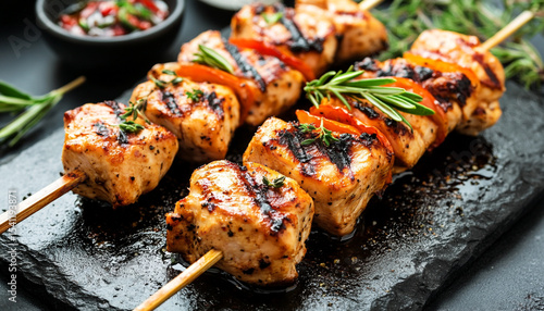 grilled chicken skewer with herbs and spices
