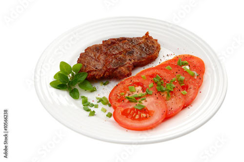 Grilled steak with vegetable salad isolated on white