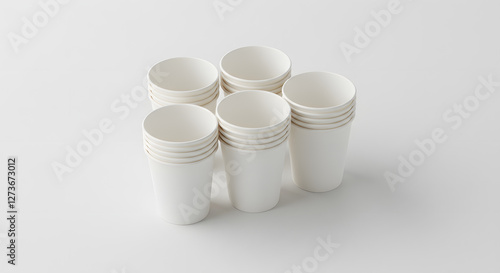 Group blank 4 oz cups white paper background top down view bright clean studio setting