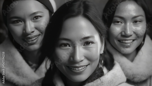 group of beautiful attractive Inuit young women looking at the camera. Generative AI