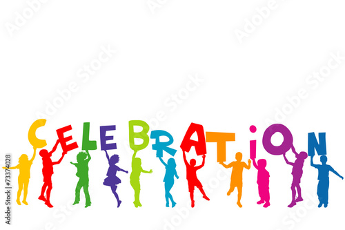 Group of children silhouettes holding letters with word CELEBRAT