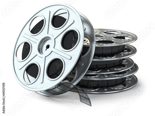 Group of film reels isolated on white background