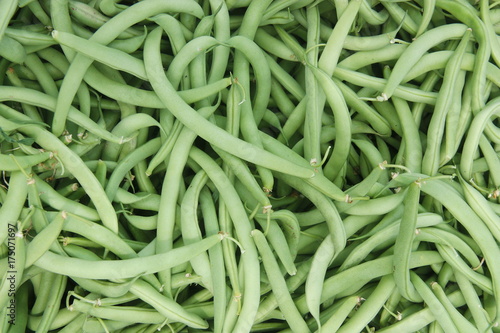 Group of green beans sold in a food market