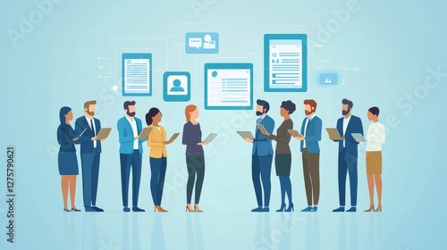 Group of professionals collaborating on data sharing.