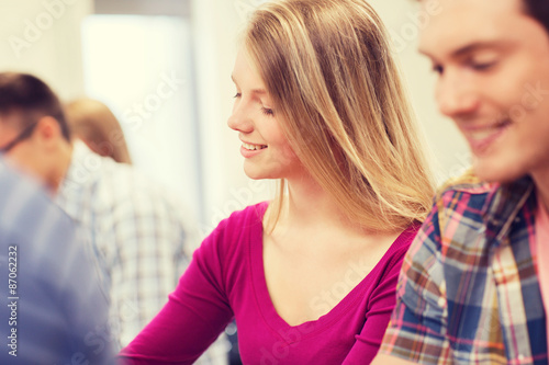 group of smiling students in lecture hall