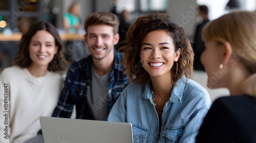 Group of smiling young friends having a conversation.