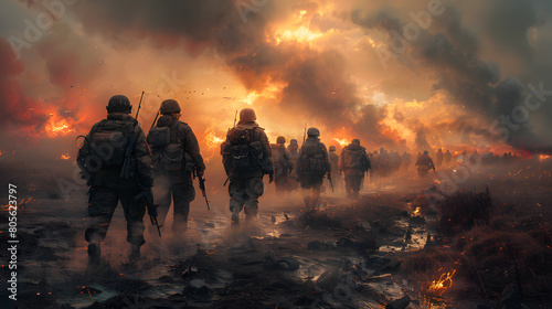 group of soldiers on the Outdoor on army exercises. war, army, technology