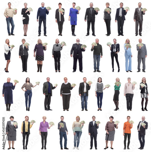 group of successful people holding money in hand