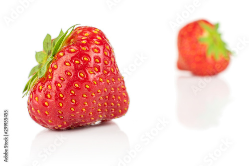 Group of two whole fresh red strawberry isolated on white background