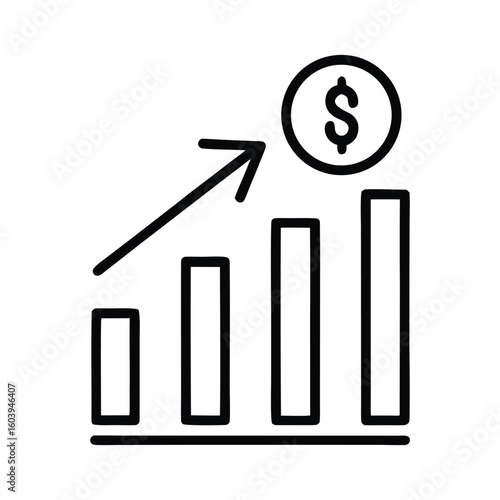 Growth graph with an upward arrow signifying business success and financial progress growth chart silhouette vector icon illustration line art on white background