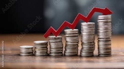Growth of Investments Illustrated with Coins and Upward Arrow Symbol