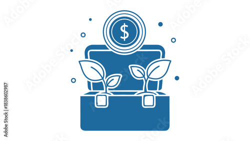 Growth of Money in Briefcase with Plants and Coin in Blue Tones