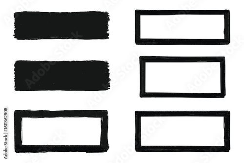Grunge banners collection set. Black distressed rectangular frames headers labels. Vintage textured borders design elements. Isolated vector graphics templates
