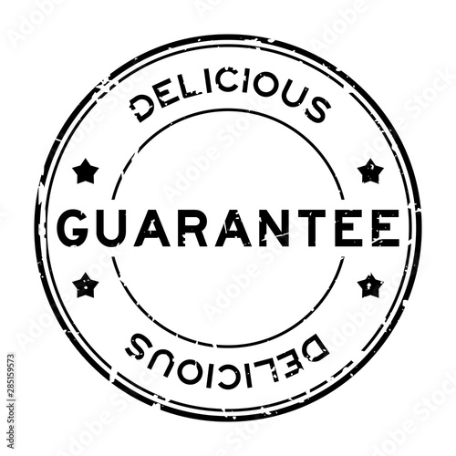 Grunge black guarantee delicious word round rubber seal stamp on white background