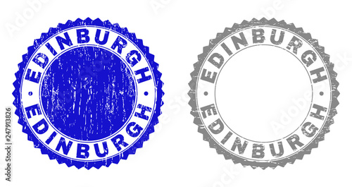 Grunge EDINBURGH stamp seals isolated on a white background. Rosette seals with distress texture in blue and grey colors. Vector rubber stamp imprint of EDINBURGH tag inside round rosette.