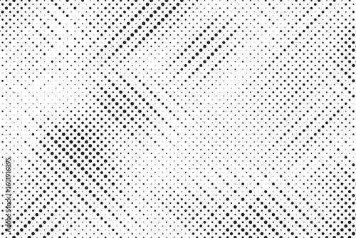 Grunge halftone gradient background. Faded grit noise texture. White and black sand wallpaper. Retro pixelated backdrop. Anime or manga style comic overlay. Vector graphic design textured template