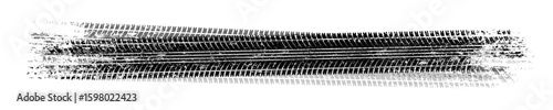 Grunge tire tracks with mud splatters, dirty wheel braking marks. Truck, car, or motorcycle tread pattern silhouettes. Perfect for off-road, motorsport, and racing designs. Vector illustration
