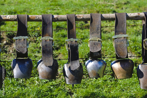 Gruppe von Kuhglocken auf einer bayerischen Alm