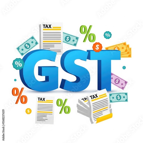 GST Tax Concept Vector with Currency Notes and Percentage Icons – Clean Business Design