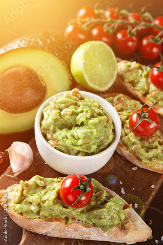 Guacamole with bread and avocado