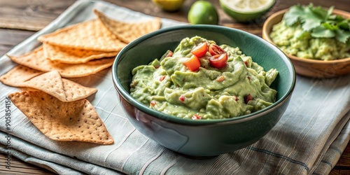 Guacamole with tortilla chips and avocado