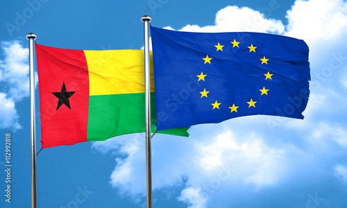 Guinea bissau flag with european union flag, 3D rendering