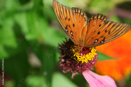 Gulf fritillary butterfly on dahlia 3