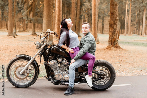 guy with a girl in the park on a motorcycle