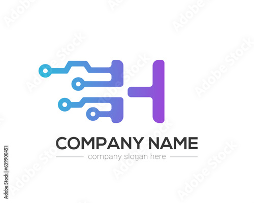 H Letter Tech Logo Design Vector Template. H Letter Icon Design with Digital Circuit Connection Symbol. Motion Speed Line Letter H Logo Element.