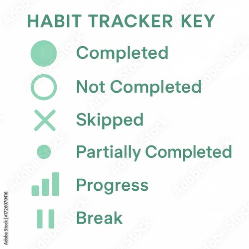 Habit tracker graphical key showcasing status indicators and color-coded symbols designed for effective personal goal management and behavioral assessment in a visually appealing nuance
