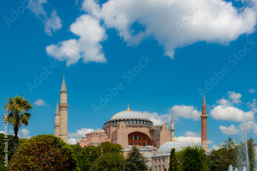 Hagia Sophia in summer, Istanbul, Turkey. Hagia Sophia or Hagia Sophia is one of the city's best-known tourist attractions. Beautiful natural view of Hagia Sophia on a sunny and cloudy day.