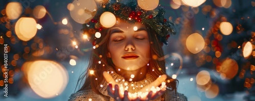 Hairstyle of a model with a Christmas tree for a Christmas wish