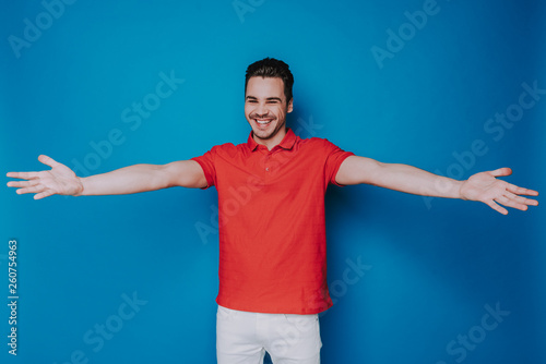 Half length of smiling man posing for camera in studio
