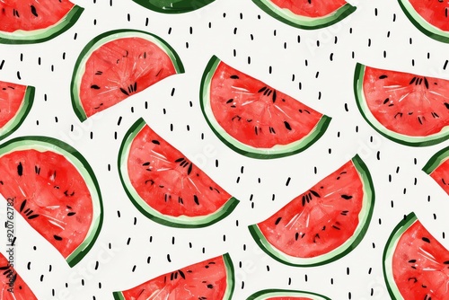 Half-cut Watermelon Fruits Logo seamless pattern Flat Design Cartoon Vector. Beautiful simple AI generated image in 4K, unique.