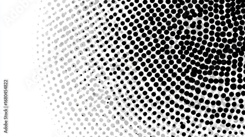 Halftone dotted background with circular dot pattern, abstract vector design featuring retro halftone effect, minimal black and white dots isolated on white background for modern graphic projects and