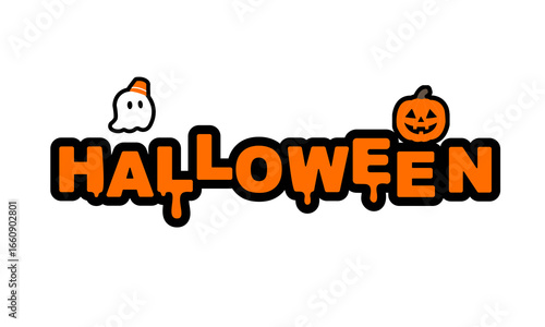ハロウィンのポップなロゴ シンプル かわいい 文字 HALLOWEEN お化け ジャックオランタン パーティ 招待状